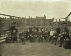 It was located in an essentially industrial neighborhood. There were many large establishments, the principal ones being the Baltimore and Ohio shops on Pratt Street, and Bartlett and Hayward's Iron Foundry. People lived in the neighborhood where they worked, so that there was a settled population, and a real neighborhood feeling. Employment was steady and conditions were fairly favorable. The people were independent in character, self-respecting, and did not need material relief. They were largely Irish and German, though Poles, Lithuanians, Italians and Jews resided there as well.[3]