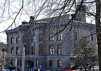 The Lawrence Light Guard Armory is a historic armory building at 92 High Street in Medford, Massachusetts. The three-story granite and brick building was built in 1891 to a design by Shepley, Rutan and Coolidge. The Romanesque Revival building has massive granite quoins on the corners, a granite course between the first and second floors, and granite lintel sections above its windows. The entrance, centered on the north facade, is flanked by round turrets with crenellated tops.[2]
