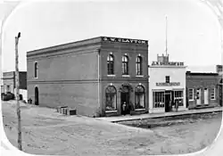 They built the first two-story brick building on Larimer Street in Denver, the block on which the building once stood is now called Larimer Square.[3] The store originally carried only groceries and liquor,[6] but starting in 1863 they began to transform their store into a toys and fancy goods shop.[2] This may have been at the encouragement of Brewer,[4] who formerly had worked in his father's fancy goods shop in Boston.[5] Brewer, like Greenleaf, was a Freemason, a member of Denver Lodge No. 5 A.F. & A.M., and was Past Master of that lodge from 1870 to 1872.[7] The two men would work together for thirty years.[3]