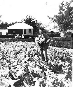 From November 1923 (age 24) to April 1928 he was the Bermuda Government's first plant pathologist and entomologist—the first Bermuda Government agricultural scientist. He developed agricultural laws for Bermuda; initiated seed testing; registered local seedsmen; organised the improvement of seed potatoes; established plant quarantine; studied the diseases of celery and other vegetables, maize, vines, avocados, bananas and citrus fruits; and investigated the banana losses from the Mediterranean Fruit Fly.[2][14][15][16][17]