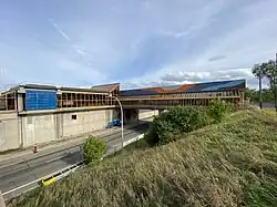 Spacing... Aerial Highways, a large 300 foot ceramic tile mural designed by Claude Breeze,[12] spreads across the north face of the main station building above the bus platform.