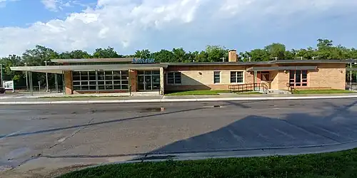 A $1.5 million project in 2011 added an accessible platform and new lighting. The neon signs on the canopy reading "Lawrence" were replaced, while the red "Santa Fe" sign over the entrance was replaced with a similar blue "Amtrak" sign.[5][6] BNSF Railway donated the station building to the City of Lawrence in 2017. A $1.8 million renovation in 2018 included a new roof, electric, and HVAC systems; accessibility improvements; and other work. A larger parking lot was added the next year. The station was added to the Register of Kansas Historic Places on November 18, 2017, and was listed on the National Register of Historic Places in 2018.[5]