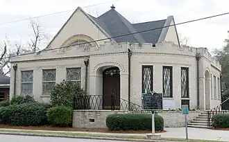 Lawtonville Baptist Church is a historic Baptist church located at Estill, Hampton County, South Carolina. It was built in 1911 and is a brick building with a complex pavilion roof. It features projecting gables, stained glass windows, and a rear entrance that resembles a castle keep in the Late Gothic Revival style. In 1945, the congregation added a Sunday School building to the east of the original church building, and a music building was added in 1962. The church was renovated in 1973.[2][3]