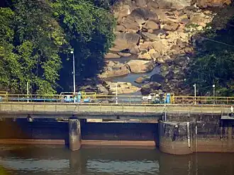 The Laxapana Dam is a gravity dam built across the Maskeliya Oya, 2.8 km (1.7 mi) downstream of the Laxapana Falls, in the Central Province of Sri Lanka.[1]