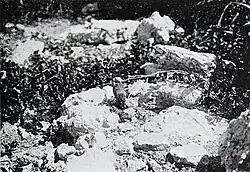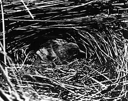 The rail was initially threatened when domestic rabbits were introduced to Laysan. With no predators to control their numbers the rabbits soon ate the entire vegetation cover on the island. This turned the island into a barren dust bowl, sending the Laysan millerbird and the Laysan honeycreeper (both endemic to the island) to extinction; the Laysan finch and Laysan duck both managed to survive. In the 1900s, when destruction of the vegetation by the rabbits had only just started, the rail's population was around 2000 mature birds and at carrying capacity; it remained so until at least the early 1910s, but declined thereafter. In 1923, only two birds could be found on Laysan, and of eight that were on that occasion brought from Midway, at least two died almost immediately from lack of food and shelter.[5] The species is believed to have become extinct on Laysan during 1923, probably mainly because no habitat for nesting was left in sufficient quantity to maintain the population and also due to rats being introduced to the area in 1944.[9] The last rail was seen on Eastern Island in Midway in June 1944.[10]