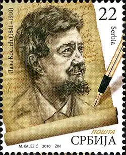 Lazar Kostić (Serbian Cyrillic: Лазар Костић; 12 February 1841 – 27 November 1910) was a Serbian poet, prose writer, lawyer, aesthetician, journalist,[1] publicist, and politician who is considered to be one of the greatest minds of Serbian literature.[2] Kostić wrote around 150 lyrics, 20 epic poems, three dramas, one monograph, several essays, short stories, and a number of articles.[3] Kostić promoted the study of English literature and together with Jovan Andrejević-Joles was one of the first to begin the systematic translation of the works of William Shakespeare into the Serbian language.[4] Kostić also wrote an introduction of Shakespeare's works to Serbian culture.[5]