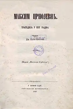 - ^ "ЛАЗА КОСТИЋ ЈЕ ШЕКСПИРА УВЕО У СРПСКУ КУЛТУРУ ПРЕКО НОВОГ САДА". Културни центар Новог Сада (in Serbian). 26 December 2016. Archived from the original on 18 November 2017. Retrieved 4 January 2020.