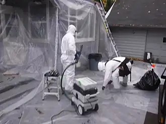 There are various lead abatement techniques to remove residential lead-based paint and lead in household dusts. Encapsulation and enclosure makes the hazard of lead-based paint inaccessible, while chemical stripping, removal of abrasives, scraping with the hand, and component replacement are effective in permanently removing lead-based paints from households.[5] Encapsulation refers to the technique that coats all lead-contaminated surfaces with a special liquid coating, which provides a long-lasting and effective barrier and prevents lead dust particles from being released. Enclosure refers to covering all lead-contaminated surfaces and objects with a solid, dust-tight barrier, which is effective in not exposing children to harmful lead paint but is not a permanent solution. Removal is the act of scraping, stripping, vacuuming, and blasting lead-based paint from contaminated surfaces. Replacement is the simple removal and substitution of only objects contaminated with lead, such as lead-painted doors and windows.[5] However, residential lead abatement practices are relatively expensive, and some practices are ineffective and could even worsen the current situation.[4][5]