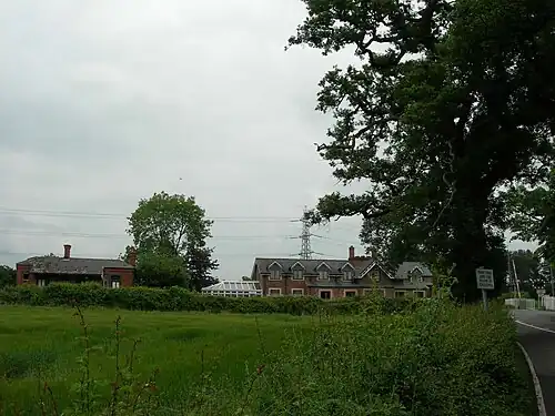 Leaton railway station was a minor station located about six miles north of Shrewsbury on the GWR's Paddington to Birkenhead main line. Today this is part of the Shrewsbury to Chester line. It was at the top of the long climb up Hencote bank out of Shrewsbury. The station opened on 12 October 1848 and closed on 12 September 1960.[2] The station building (now a private house) can still be seen on the north side of the adjacent Leaton level crossing on the east side of the line. A small industrial estate now exists at the former railway sidings.