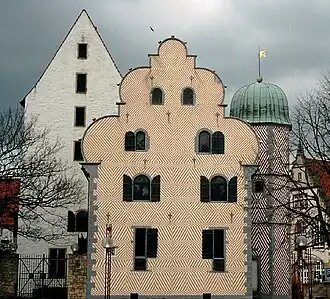 - ^ The building, in Weser Renaissance style, was completed in 1588