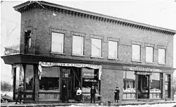 The building was expanded in 1914, allowing for more businesses on the first storey as well as hotel suites on the second storey.[12] A third storey was also added to allow for greater capacity in the hotel.[13] It was at this time that the building was named the Sudbury Hotel, providing accommodations for travelers.[13] The first storey now housed a lobby for the hotel as well as the other businesses, including the addition of a taxi service.[13] The building was purchased in 1930 by Hascal Moses, a Jewish immigrant from Romania, who also owned the Moses Block in downtown Sudbury, a smaller flat-iron building.[14] Moses sold the building upon his retirement in 1949.[14] A fire destroyed the building in the winter of 1952, at which time the current Ledo Hotel was built, matching the footprint of the former Sudbury Hotel.[4]