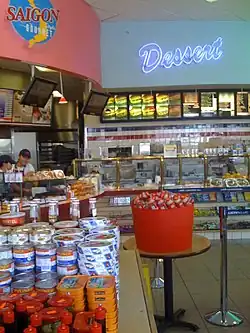 Lee's Sandwiches International, Inc., is an American fast food restaurant chain serving Vietnamese cuisine headquartered in San Jose, California, with locations in several states and in Taiwan. Lee's Sandwiches specializes in bánh mì, "European-style" baguette sandwiches, Vietnamese iced coffee, and Vietnamese dessert chè.[6] It is credited with popularizing Vietnamese sandwiches and iced coffee among mainstream American consumers and inspiring several other Vietnamese-owned bakery chains.[7][8][9]