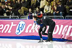 ![]() Lee Bo-ra after her fall in the 500 meters at the 2009 World Single Distance Speed Skating Championships. | |