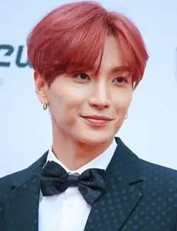 When Leeteuk traveled to Apgujeong-dong to sightsee in early 2000, a talent scout approached him and recommended he audition for SM Entertainment's Starlight Casting System.[13] After several test recordings and performances, he signed with SM Entertainment and became a trainee. In the same year, he appeared as an extra in the drama All About Eve which aired on MBC TV, and briefly modelled for Pepsi in 2002.[14][15] In 2003, he was put into the five-member boyband Smile with future bandmate Donghae, which aimed to rival the group TVXQ. The project was dropped, and they were put into the rotational group Super Junior along with ten other boys.[16] Being older than the other trainees, Leeteuk became the group's leader.[17]
