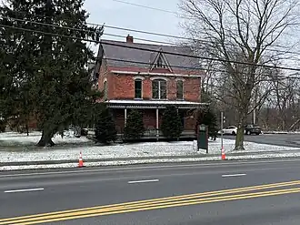 The Lee Tracy House is a historic house on United States Route 7 in the village center of Shelburne, Vermont. Built in 1875, it is one of a small number of brick houses built in the town in the late 19th century, and is architecturally a distinctive vernacular blend of Gothic and Italianate styles. It was listed on the National Register of Historic Places in 1983.[1]
