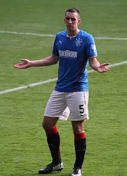 Following the liquidation of The Rangers Football Club plc, Wallace opted to transfer his contract to the new company.[17] At the beginning of the 2012–13 season Wallace was appointed vice-captain. On 14 September 2012, Wallace signed a new five-year contract with Rangers.[18] Wallace was sent off during a game against Annan on 18 December 2012, conceding a penalty which was saved by Rangers goalkeeper Neil Alexander.[19] This red card was rescinded on appeal. Wallace started the first game of the 2013–14 season in a 4–0 win over Albion Rovers in the Scottish Challenge Cup.[20] Wallace played in the first league game of the season in a 4–1 win over Brechin City at Ibrox.[21]