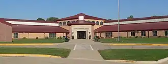Leeds Junior High School was a historic building located in Sioux City, Iowa, United States. High school education in the city dates from 1867, and the first dedicated high school building was completed in 1893.[2] Other schools were built as the district and the city continued to grow. Leeds Junior-Senior High School was built to educate students on the far northeast corner of the city. It was financed by a combination of a local bond referendum and funds from the Public Works Administration. The two story brick building was completed in 1939 in the Art Deco style. Eventually newer high schools and junior high schools were built on the north side of Sioux City, and the building became an elementary school. It was listed on the National Register of Historic Places in 2002.[1] The building was torn down in 2008 when it was replaced by a new school building.[3]