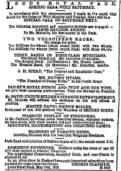 - ^ "Withdrawal of the music licence from the Leeds Royal Park". The Leeds Mercury. No. 9418. 19 June 1868. p. 3. OCLC 32428267.
