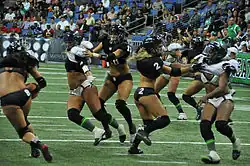 LFL players with experience in track and field competitions noted that the typical LFL uniform is comparable to other uniforms, with Elizabeth Govrick of the Minnesota Valkyrie stating she "ran track and I was wearing, you know, stuff if not close to almost smaller than what I'm wearing out on the football field. You take beach volleyball, you take volleyball, you take other sports where it's pretty much the same thing."[42] Adrian Purnell of the Jacksonville Breeze said that the outfits were only for marketing purposes.[43] Heather Furr, a quarterback for the Chicago Bliss said "I think with little girls watching the game ... if they can see past the uniform and see us as role models, then that's what I want."[41] Abbie Sullivan of the Cleveland Crush stated, "Just because we play in the LFL does not mean we promote promiscuity. We are smart females. We are athletes who take care of our bodies. We are the total package." Similarly, Toledo Crush player Marija Condric stated, "Everyone is entitled to their own opinion. Sit down and watch. You'll forget what we are wearing and you will be thinking about how hard that girl got hit on that last play."[44]