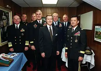 - ^ Vistica (1997), pp. 183, 189–190. Polmar, Norman (December 1985). "The U.S. Navy: Command Changes". Proceedings of the U.S. Naval Institute. 111 (12): 994.