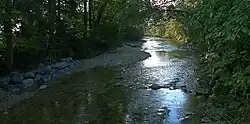 The Leiblach is a 34-kilometre-long (21 mi) tributary of Lake Constance (Obersee) and the Rhine, respectively. It forms the Austria–Germany border near the lake.