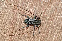 Leiopus femoratus is a species of longhorn beetles of the subfamily Lamiinae. It was described by Fairmaire in 1859, and is known from Bulgaria, the Caucasus, France, northern Iran, southern Russia, and Turkey. The beetles inhabit a variety of deciduous trees, including those in the genera Castanea, Carpinus, Juglans, Ficus, and Tilia. They measure 5-8 millimetres in length, and can live for approximately 1–2 years.[1]