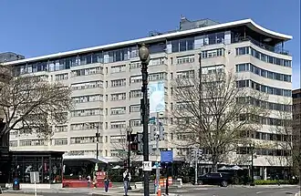 In 1941 Juliette chose to make her permanent home at Beverly, Massachusetts, leaving the Dupont Circle house vacant, which a local news report lamented: "For Washington society the breaking up of the Leiter menage means more than just a change of residence for the family. It's the finish of an era of lavish and elegant entertaining that none of us may ever see again."[25] After Juliette died in 1942, the house was rented by the US government during World War II as office space for the National Advisory Committee for Aeronautics. The house was rezoned for apartment use that same year, despite objections from neighbors including the Woman's National Democratic Club, headquartered at the nearby Whittemore House.[3][26] Thomas sold the house in 1944 for $190,000 to architect and real estate developer Alvin C. Aubinoe, who announced plans to demolish the building and replace it with a hotel.[3][27]