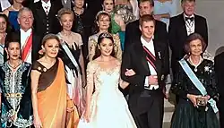 Wedding guests included friends and relatives from around the world including relatives of his mother from Australia. Guests also included members of other royal families from neighbouring countries and further afield. These included Queen Sofía of Spain and Prince and Princess Michael of Kent. Prince Michael of Kent is a first cousin of Queen Elizabeth II and his wife Princess Michael of Kent is related to Prince Leka through her mother, Countess Marianne Szapáry, who was a 5th cousin of Queen Géraldine and had been a bridesmaid at her wedding to King Zog in 1938. Other royal guests included Empress Farah of Iran, Crown Prince Alexander and Crown Princess Katherine of Yugoslavia, Crown Princess Margareta of Romania, Custodian of the Crown and Prince Radu of Romania, Nicholas, Prince of Montenegro, Prince Guillaume of Luxembourg together with Princess Sibilla, Georg Friedrich, Prince of Prussia, Princess Léa of Belgium and other members from the royal families of Russia, Liechtenstein, Romania, Greece, Georgia, Morocco and members of other noble families. Heads of state of Albania also attended the ceremony.[15]
