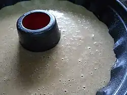 Lekach is a honey-sweetened cake made by Jews,[1] especially for the Jewish holiday of Rosh Hashanah.[2] Known in Hebrew as ugat dvash (עוּגַת דְּבַשׁ, lit. 'honey cake'), it is mainly eaten in Israel by Israeli Jews and Jewish people all over the world who know it by its Yiddish name, lekach (לעקעך), phono-semantically matched in Hebrew as [ugat] lekakh ([עוּגַת] לֶקַח, lit. 'lesson cake') influenced by the Biblical association of teaching with honey. It is traditionally eaten at Rosh Hashanah in hopes of ensuring a sweet New Year.[3] It is also customary to ask for and receive a honey cake on Erev Yom Kippur.[4]