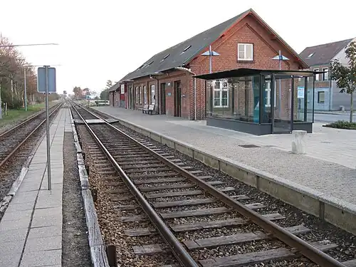 The station opened on 8 August 1875 as the section from Varde to Ringkøbing of the new Esbjerg–Struer railway line opened.[2] It has been unstaffed since 1970.[2]