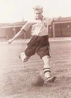 In 1940 Staples signed for Leicester City, playing for the Juniors in the 1940/1 season (winning the league) and the Colts in the 1941/2 and 1942/3 seasons. Staples made his debut for Leicester City's senior side aged 17 in the final game of the 1942/3 season, an away game at Stoke City for which Leicester arrived with only 8 players. The match was delayed until a full team could be fielded, with two Stoke players who were on Service leave and a Port Vale player being drafted in to complete the Leicester team.[2] In the early months of the following season (1943/4) Staples appeared more regularly for the senior Leicester City side, making a further 4 appearances and scoring 1 goal.[3]
