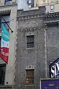 The facade consists of two sections. The three-story-tall eastern section is wider and is symmetrical, containing the auditorium entrance. It is made of yellow-beige brick with white terracotta decorations.[14][15] The western section, which contains the stage house, is four stories high and contains a brick facade.[16] The third story of the auditorium is on an intermediate level between the third and fourth stories of the stage house.[15]
