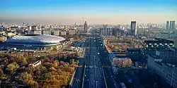 Leningradsky Prospekt (Russian: Ленингра́дский проспе́кт), or Leningrad Avenue, is a major arterial avenue in Moscow, Russia. It extends north-west from Belorussky Rail Terminal as a continuation of Tverskaya Street and 1st Tverskaya-Yamskaya Street, changing its name to Leningradskoye Highway past Sokol station on its way toward Saint Petersburg via Tver.