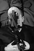 Originally commissioned in 1999 as a photo and text work for Paris' 9/9 revue d'art practique, it was presented in New York City as a performance at the College Art Association, Apex Art, Artists Talk on Art, Participant, Inc. (2005), and Location One (2007). Featured on Jochen Gerz' web-based anthology-of-art, it was exhibited at the Centre Pompidou and other museums. The photographic prints were installed at Castle Gallery, New Rochelle, New York; Klenova Castle, Klatovy, Czech Republic; and Trynarstarka Tower, Lublin, Poland.[16] A 2004 solo exhibition presented at the Slought Foundation, Philadelphia, PA, traveled to the Schick Art Gallery, Skidmore College, Saratoga Springs, NY and CUE Art Foundation, New York City, New York in 2007.[16][17][18] In 2008, Wesleyan University's Zilkha Gallery presented the multi-media installation "Lenore Malen and the New Society for Universal Harmony."[19][20][21][22]