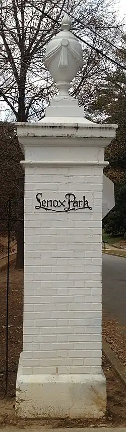 Lenox Park in the City of Atlanta was a subdivision begun in 1931 under the supervision of Ivey and Crook, architects.[1] Today it forms part of the larger neighborhood of Morningside-Lenox Park. The iconic Lenox Park urn-and-column markers (several are still standing) were the inspiration for the more numerous Morningside-Lenox Park columns standing at the entrance to the larger neighborhood.[2]