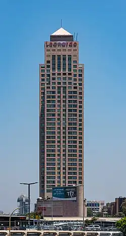 Leonardo City Tower Hotel (Hebrew: מלון לאונרדו סיטי טאואר) is a skyscraper in the Tel Aviv District city of Ramat Gan, Israel, and the tallest hotel (although it also contains residential apartments) in Israel. It was the tallest building in Ramat Gan from its construction in 2000, until 2001, when it was surpassed by the Moshe Aviv Tower.
