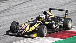 With these results, Fornaroli went into the season finale at Monza as the championship leader, sitting one point ahead of Gabriele Minì.[47] His weekend started in perfect fashion, as he took his second pole position of the year, though the championship remained close following a scrappy race from both Fornaroli and Minì on Saturday.[48][49] On the opening lap of the feature race Fornaroli lost the lead to Alex Dunne and would soon find himself fighting for the top five positions. Whilst Sami Meguetounif was able to clear his competitors for an eventual victory, Fornaroli would battle Minì and Christian Mansell until the penultimate lap, where his Italian title rival moved into second place; with Fornaroli in fourth and behind Mansell this would mean a title for Minì. In a last attempt on the final lap, Fornaroli threw his car down the inside of Mansell at the final corner, claiming third place without making contact and crossing the line to narrowly win the title.[50][51] Minì was later disqualified for incorrect tyre pressures, meaning that Fornaroli inherited second.[52] With this, Fornaroli became the first ever champion of FIA F3 or its predecessor GP3 to not win a race during the season, claiming the championship through his consistency and clean driving — he did not retire from any race during the season, only failing to score points in two races.[53]