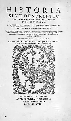 - ^ a b Julius Heidemann (1894). "Thurneisser zum Thurn, Leonhard". Allgemeine Deutsche Biographie (in German). Vol. 38. Leipzig: Duncker & Humblot. pp. 226–229.
