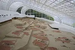 Some of the dead were buried in the houses under the exceptionally preserved floors.[6] They are believed to be prominent members of the group but there are also some skeletons of children.[29]