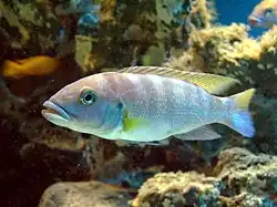 Lepidiolamprologus cunningtoni is a species of cichlid endemic to Lake Tanganyika where it prefers areas with sandy substrates in which it digs crater-shaped nests. This carnivorous species takes fish as prey. This species can reach a length of 29.1 centimetres (11.5 in) TL.[2] This species inclusion in this genus has been questioned based upon its lacking many of the characteristics of its congeners.[3] It can also be found in the aquarium trade.[2] The specific name of this fish honours the British zoologist William Alfred Cunnington (1877-1958), who collected the type on an expedition to Lake Tanganyika.[4]