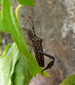 Leptoglossus gonagra, known as the passionvine bug, citron bug or squash bug in different parts of its range, is a species of leaf-footed bug in the family Coreidae. It is found in Africa, the Caribbean, Central America, North America, South America, Southern Asia, the Pacific Ocean and Oceania.[2][3][4][5]