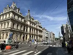 The Place des Cordeliers became one of the most important centers of the city. The Église of Saint-Bonaventure was flanked with the Galleries Lafayette and Le Grand Bazar. From 1887, the creation of the quarter Grolée was decided. Many stalls savetier crowded round the foothills of the Church. The streets at the rear of the building didn't exceed 2m wide and formed an unhealthy maze. Mayor Antoine Gailleton said : "(The quarter) has not yet had its part of transformations which, for a period of thirty years, have so powerfully contributed to give to our city an aspect of great city that suits it and which it must hold the first rank after the capital."[10] Expropriations began in 1889. Except two large buildings on the Rhône and another one on the Place de la Republic, the current quarter was almost complete in 1894, then fully completed in 1908. In 1909, the tram took the central axis of the quarter, the current rue Carnot,[11] which marked the tangible success of the quarter re-development.
