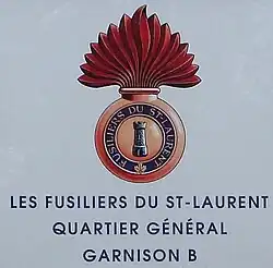 Les Fusiliers du St-Laurent (French pronunciation: [le fyzilje dy sɛ̃ lɔʁɑ̃]) is a Primary Reserve infantry regiment of the Canadian Army. It was first raised in 1869 but also perpetuates the 4th Battalion, Select Embodied Militia, from the War of 1812. From 1954 to 1968, as a reserve regiment, it also was given a subsidiary title as the 5th Battalion of the Royal 22e Régiment. This association was ended in 1968.[1][2] The regiment celebrated 150 years of continuous service in 2019.[3]