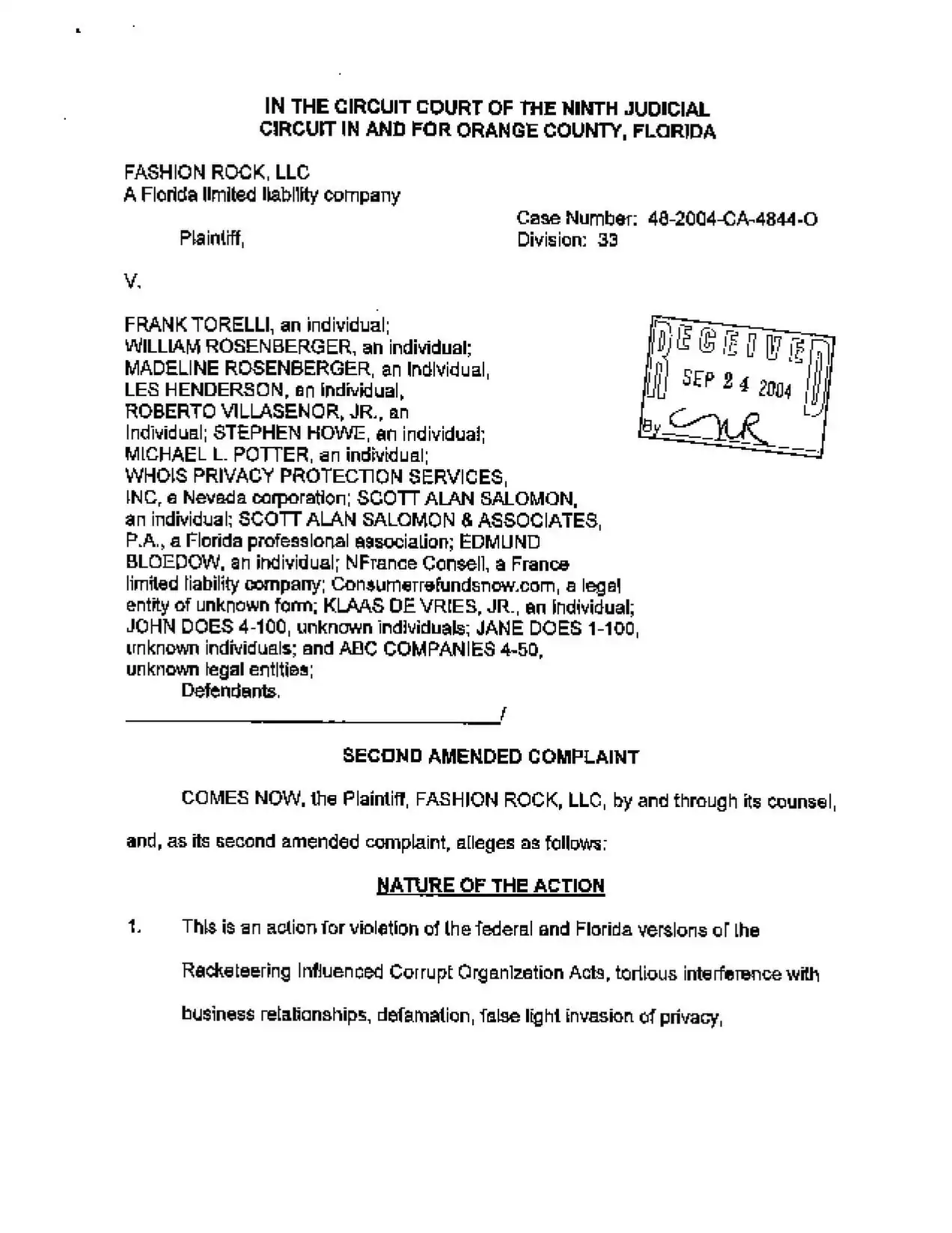Fashion Rock, LLC vs Frank Torelli et al., 48-2004-CA-004844-O (C.C. Flo. 2004), a case in the Circuit Court of the Ninth Judicial Circuit in and for Orange County, Florida.