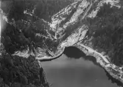The blazon of the municipal coat of arms is Chevron rised Argent, and Argent an inscription 1812 Sable. 1812 refers to the foundation of the municipality.[6]