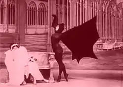 Despite World War I limiting the audience for the film (unlike Feuillade's earlier work Fantômas) it was a huge success in France, massively outshining the original competition from Pathé and the serial The Mysteries of New York.[10] Much of the film's success is said to have been from the inclusion of Musidora as the antagonist Irma Vep, who fitted well with the archetypes of "vamp" and "femme fatale",[17] often being compared to Theda Bara.[18] The police force, however, condemned the series for its apparent glorification of crime and dubious morality.[10] Some of the episodes were temporarily banned,[19] but these bans were retracted after a personal appeal from Musidora.[20]