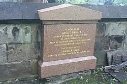 This memorial, was originally erected in 1784 by Robert Baillie as a memorial to his wife May Reid and his other daughter Grace (Maria), is nowadays located between Sinclair Street and Glencairn Street, near the site of Mayfield House in Stevenston. It was originally situated in an area known as the 'Monument Park' near Kerelaw Mains Farm.[1] Lesley's name was added in 1929 when the monument was re-erected on its present site by members of the Burns Federation after it had been derelict for over 50 years. It is now maintained by North Ayrshire Council.[11][12]