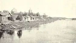 Jääski may have been mentioned in a Russian chronicle from 1137 as an area taxed by the bishop of Novgorod, but this identification has not been confirmed. The first clear mention of Jääski is from 1323, as it was mentioned in the Treaty of Nöteborg as one of the three pogosts given to Sweden by Novgorod, the other two being Äyräpää and Savilahti (Mikkeli).[10] The pogost also included the territories of the later Ruokolahti, Antrea, Kirvu and Vuoksenranta parishes as well as parts of Rautjärvi, Joutseno, Nuijamaa and the Viipuri parish. It is possible that the entire area of what became the Viipuri parish belonged to the Jääski pogost before the construction of the Vyborg Castle.[11] Out of these parishes, the territories of Viipuri, Antrea, Kirvu and Vuoksenranta are now part of Russia while Ruokolahti, Rautjärvi, Joutseno and Nuijamaa are part of Finland.