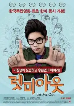 Let Me Out (Korean: 렛 미 아웃) is a 2013 South Korean film. Part coming-of-age, part comedy, the low-budget indie is about a film student's struggles with making a movie for the first time, and captures the harsh realities of the Korean filmmaking industry.[1] Produced by the Seoul Institute of the Arts and the Baekdu-Daegan Film Company, it was directed by Soh Jae-young (or Jae Soh) and Kim Chang-rae,[2] and starred Kwon Hyun-sang in his first leading role.[3][4]