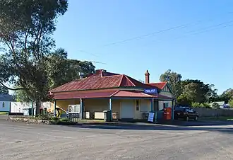 The railway came to the town with the opening of the Geelong-Ballarat line in 1862,[5] with the local railway station opened soon after, but today only grain and fruit trains use the line.
